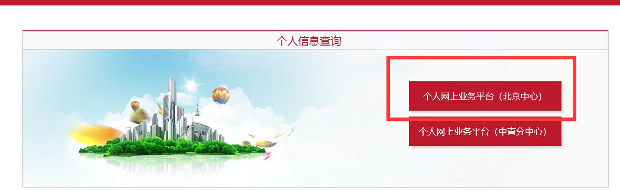 3、选择“个人网上业务平台(北京中心)”。